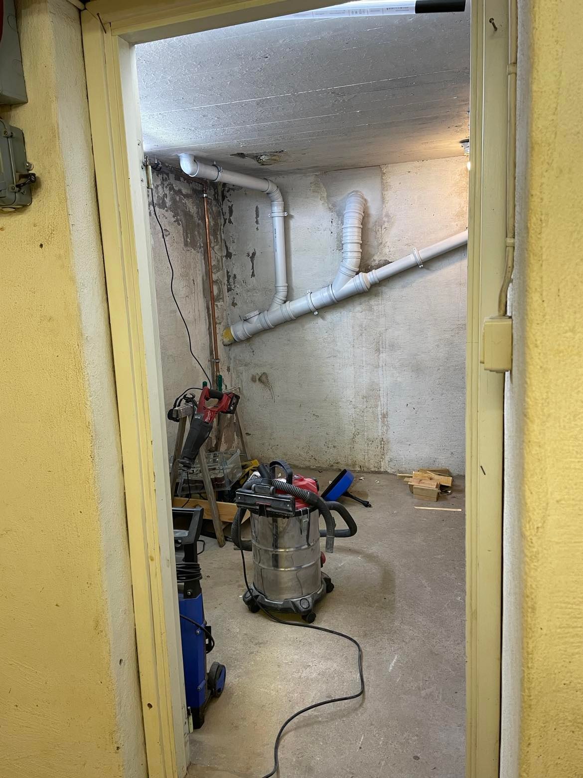 I huset finns en källarlokal som inte använts på flera år, där inreds nu för exponering av kläder, ett litet lager, omklädningsrum och annat trivsamt som hör ett showroom till. Följ gärna hur arbetet fortskrider! Uppdatering sker vid varje större steg i byggprocessen.